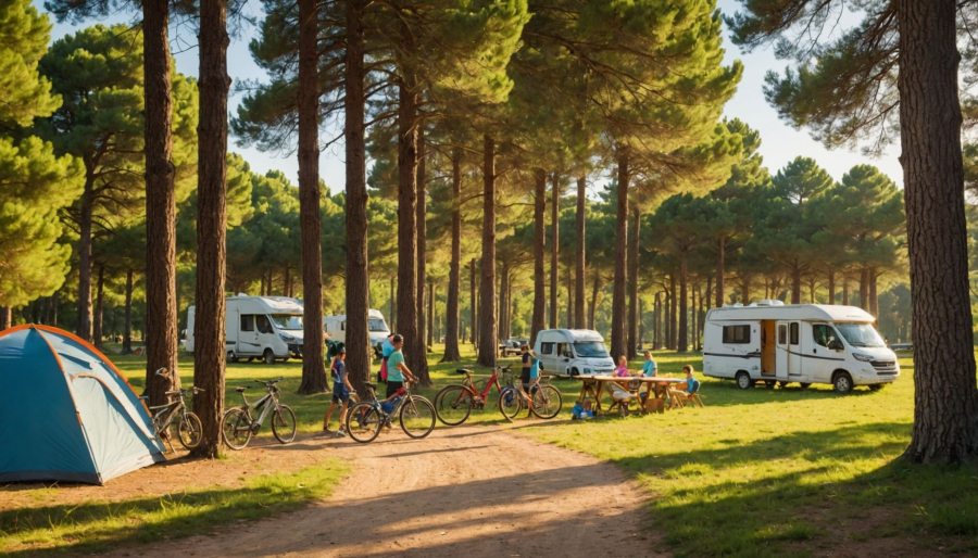 - Base camping 4 étoiles : animations nature quotidiennes, club enfants éco-responsable et location vélos électriques pour explorer les environs